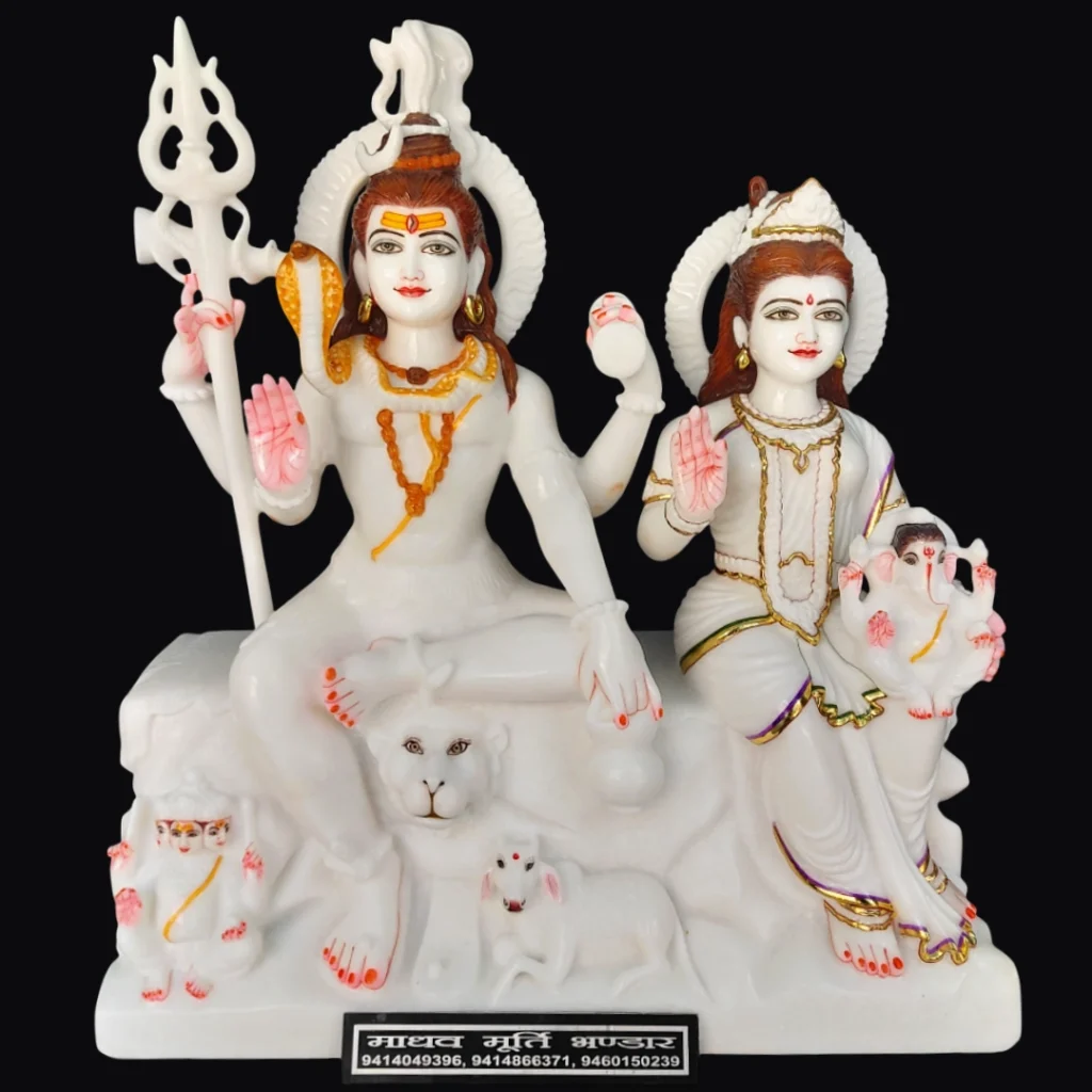 Custom Shiva Parvati murtis in medium sizes can be developed for home temples and mandirs. Adjustments in size, posture, and carving details can be made based on space and usage requirements. Our artisans in Jaipur work with selected Makrana marble to create sculptures with balanced composition and consistent detailing across figures. These murtis are suitable for both residential and temple use. Custom sizes and design inputs can be discussed before production.